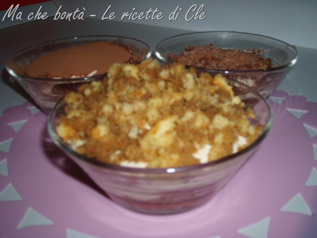 - In alternativa (ad es. per persone allergiche al cioccolato/cacao, è possibile terminare il dolce con del pan di spagna sbriciolato e leggermente bagnato con il caffè (vd. foto).