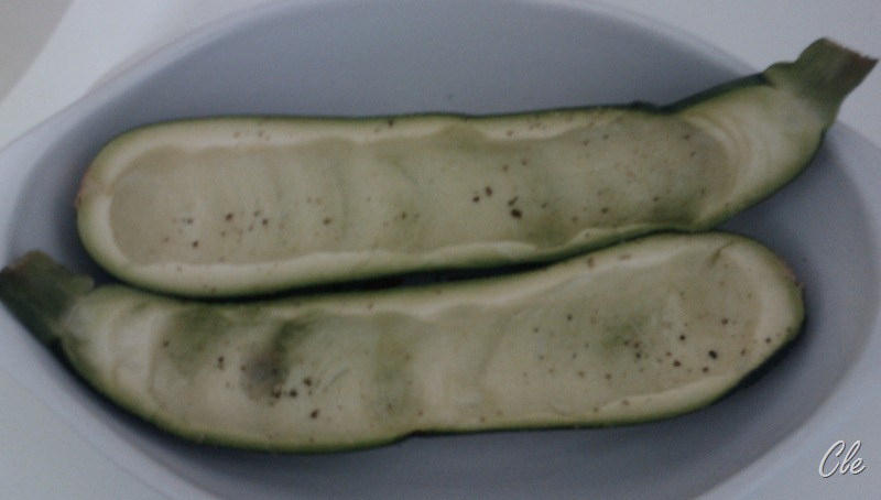 Svuotare con uno scavino o un cucchiaino una zucchina tagliata a metà per il senso della lunghezza (con la polpa di zucchina che avanza provate una di queste ricette!).
