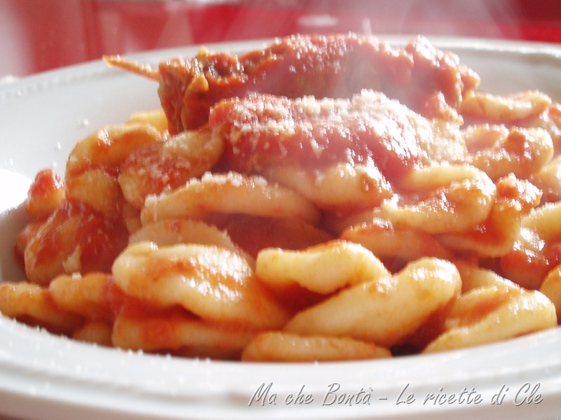 Questo sugo insieme ad una generosa spolverata di pecorino è tradizionalmente usato per condire la pasta fatta in casa come le orecchiette (ricchiteddij) o i cavatelli (maccarruni), mentre con la pasta comprata, devo dire, perde parecchio. Ma la sua bontà è elevata alla trentanovesima potenza alla sera o il giorno dopo, quando gli avanzi di pasta ben conditi si riscaldano in padella a fuoco vivo con un filo di olio ed un cucchiaio di acqua. Ergo: preparate e condite delle porzioni in più e gustatele “in differita”. Mi ringrazierete!