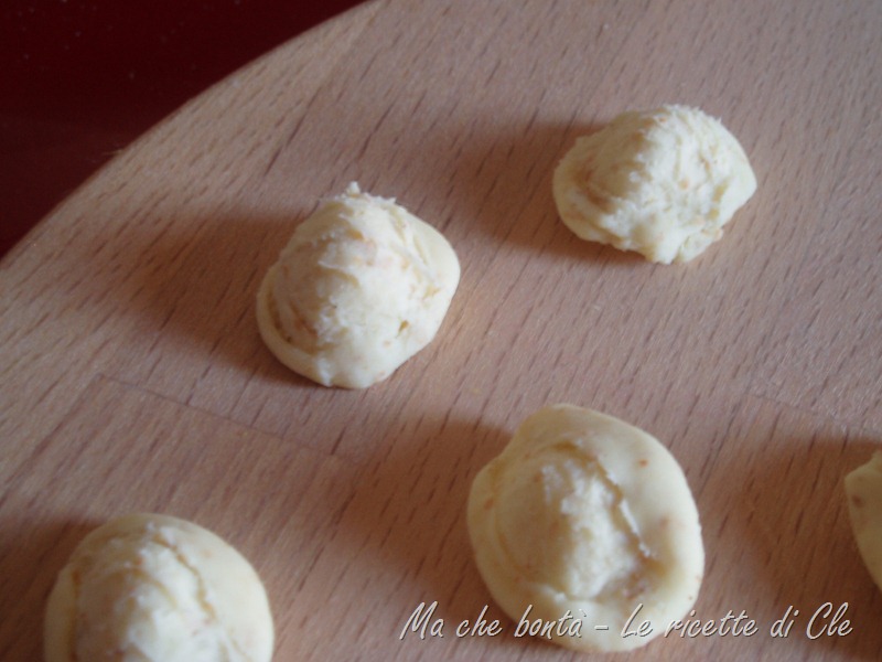 Lavorare con poca pasta alla volta per evitare che si secchi: prelevare un pezzo di pasta (grande non più di un pugno) lasciando la restante avvolta nel canovaccio, lavorarla un po’ con le mani e formare un filoncino spesso più o meno quanto un dito.