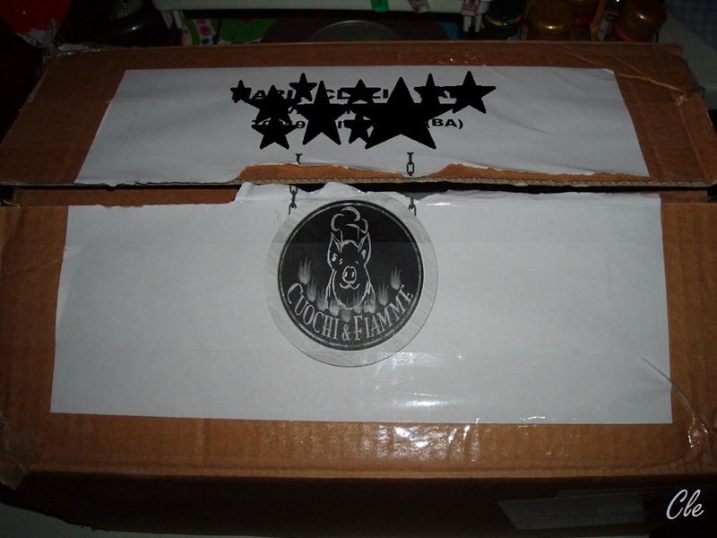 Valigetta di cuochi e fiamme???!!! Innanzi tutto la valigetta è una scatola di cartone con su appiccicato un foglio con il logo del programma.