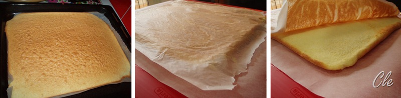 Sfornate e stendete il biscuit su un foglio di carta da forno o un panno pulito e leggermente umido (basterà farci cadere con le dita qualche goccia di acqua), staccare la carta da forno di cottura, coprire con altra carta da forno o pellicola e arrotolare (se avete intenzione di fare un rotolo). Lasciar freddare prima di farcire.