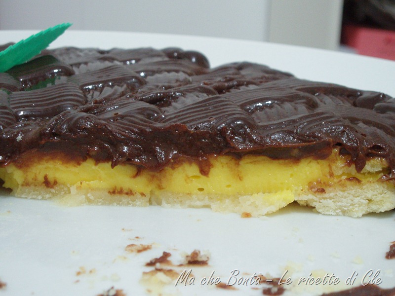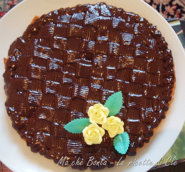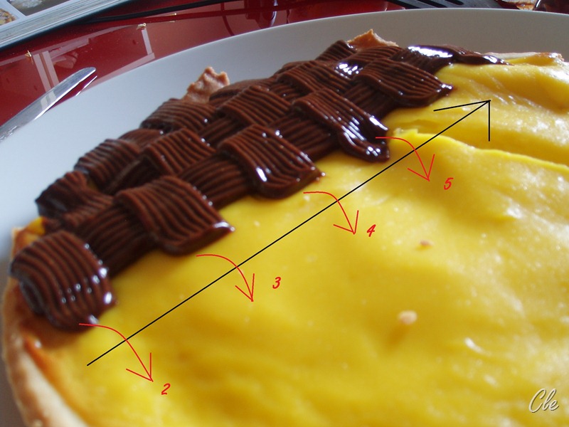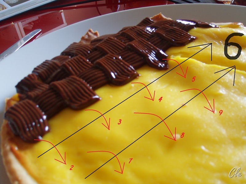 In verità in corso d’opera ho cambiato leggermente la ricetta. Di soli solito le dosi previste in questo magnifico libro sono preciserrime al milligrammo, non avanza nulla! Questa volta la crema era un po’ abbondante (nonostante avessi un guscio di frolla di diametro più grande di quello suggerito, quindi invece di sporcare altre pentole per realizzare la ganache al cioccolato con la panna prevista nella ricetta originale, ho preferito aggiungere il cioccolato direttamente nella crema pasticcera profumata al cointreau. Risultato? Sublime!