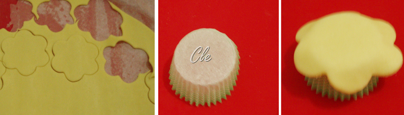 - Stendere la brisée, tagliare dei fiorellini o dei tondi, bucherellarli e adagiarli sull’esterno di un pirottino capovolto (vedi foto).
