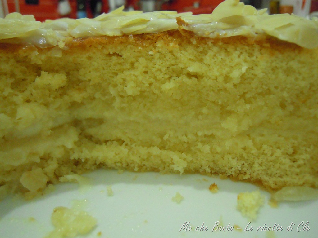 Qualche tempo fa, però, mi imbatto in una “idea” che poteva fare al caso mio. Saltando di link in link mi ritrovo chissà come in questo blog in cui veniva presentata una torta con farcia di marzapane. Mi si accende la lampadina: “Vuoi vedere che… Vuoi vedere che nella fiesta alle mandorle c’era dentro il marzapane?!!” Siiii! ma… mi mi sembra ci fosse anche anche una cremina, e delle ondine sopra…