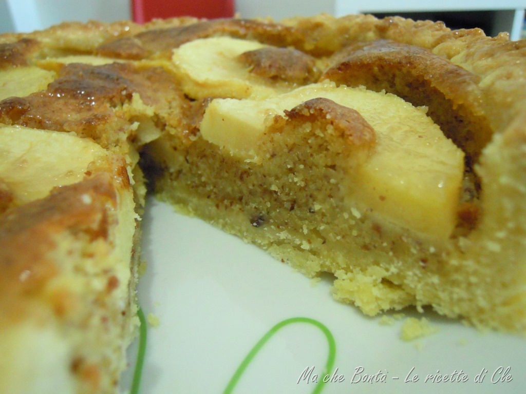La ricetta è in sostanza una semplificazione, ancora una volta, di una ricetta di Montersino, ossia la crostatina di mele di Golosi di Salute, in cui il frangipane (ossia una crema con farina di mandorle) è nella versione senza uova. Io dovevo consumare del frangipane stoccato in freezer preparato con le uova secondo la ricetta base quindi la versione che vi do è quest’ultima.