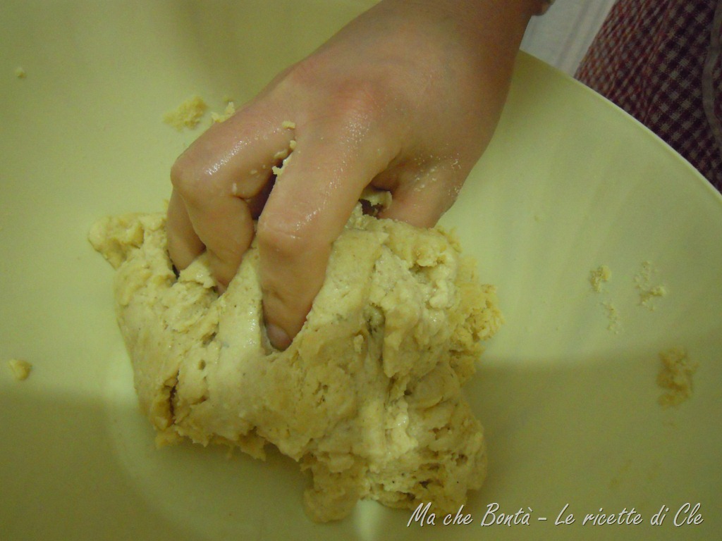 - Sfregare l’impasto con le mani sino a che la farina non acquista la consistenza della sabbia bagnata (metodo sabbiato appunto).