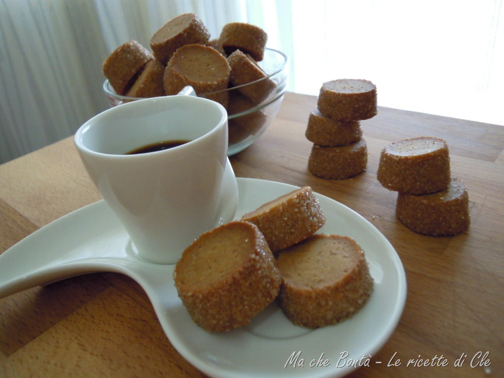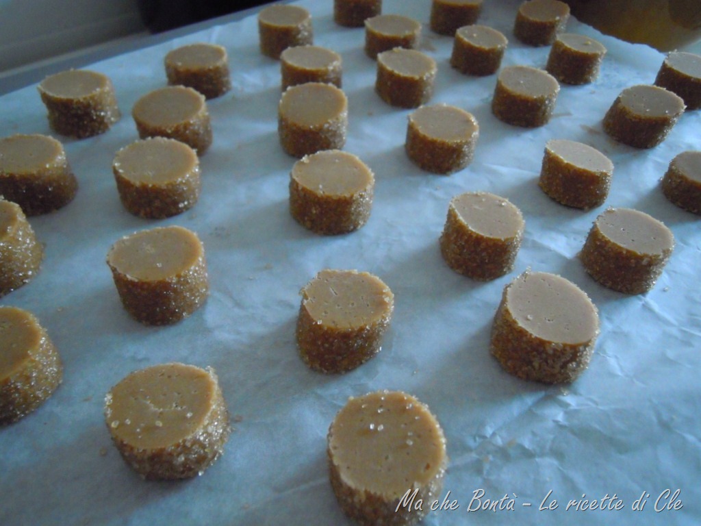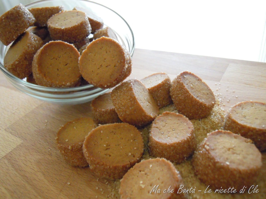 Ma ora veniamo a questi biscottini di Montersiniana origine, perfetti per accompagnare il caffè e ancor più azzeccati (secondo me) con il tea. Biscottini al caramello (simili a quelli che danno in alcuni bar).