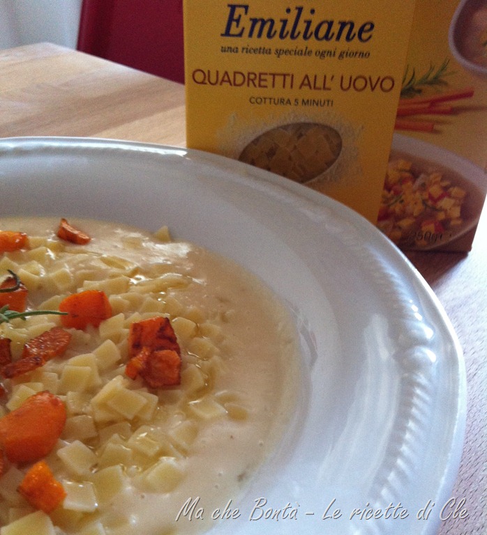 Ma passiamo alla ricetta di oggi! Facendo la spesa l’altro giorno ho notato sugli scaffali della pasta questo formato simpatico: i quadretti all’uovo della Barilla e deciso di provare subitissimo la ricetta proposta sul retro della confezione.