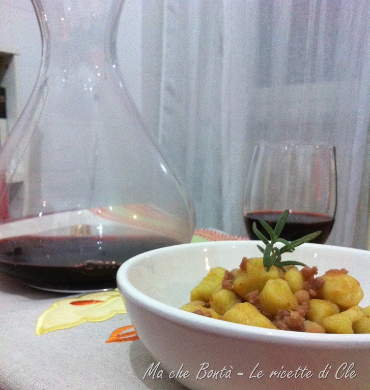 Lessate gli gnocchi e scolateli man mano che vengono a galla con una schiumarola. Versateli nel condimento e… Buon appetito! (Boil the gnocchi in salted water. They are cooked when they rise to the surface. Pick them with a slotted spoon and dive them into the sausage and beans seasoning … and Bon appetìt!)