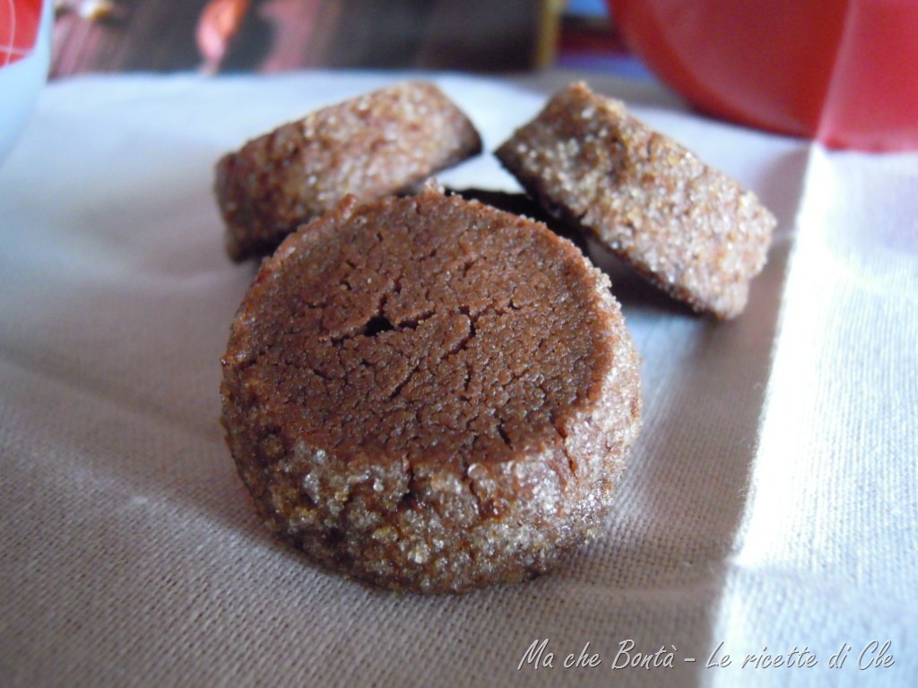 (Cut the cylinders in 2 cm high pieces: since the dough is cold and hard, you will obtain a perfectly round biscuits!)
