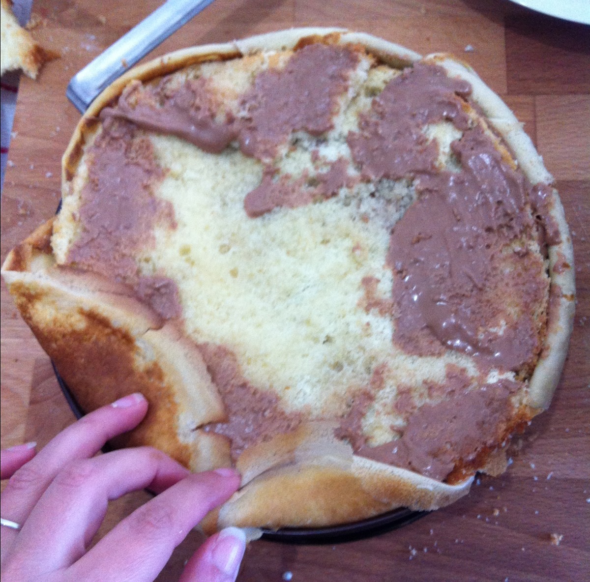 Per una variante potete anche utilizzare della nutella invece del cioccolato e/o presentare la torta sotto forma di rotolo… ma questa è un’altra ricetta!