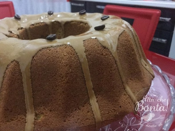Una volta fredda, preparate la glassa stemperando lo zucchero a velo setacciato con un po’ di caffè ristretto e un cucchiaino di caffè solubile. Versate la glassa sulla ciambella lasciandola colare sui bordi. Decorare a piacere con chicchi di caffè