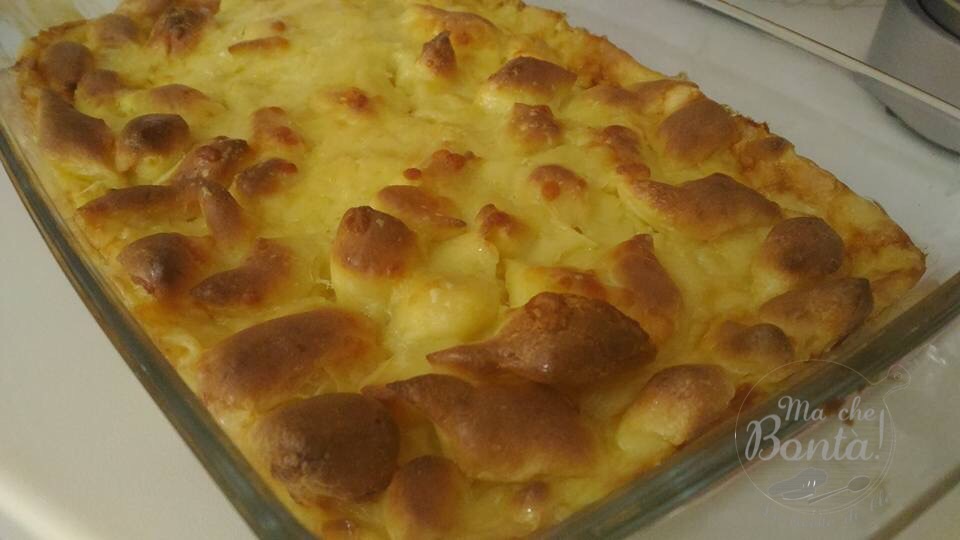 Sono un po’ laboriosi ma nulla di trascendentale. Sono degli gnocchetti di pasta bignè, spremuti su una pentola di acqua bollente con il sac a poche e poi gratinati in forno con la salsa monray (cioè besciamella addizionata di tuorli e formaggio).