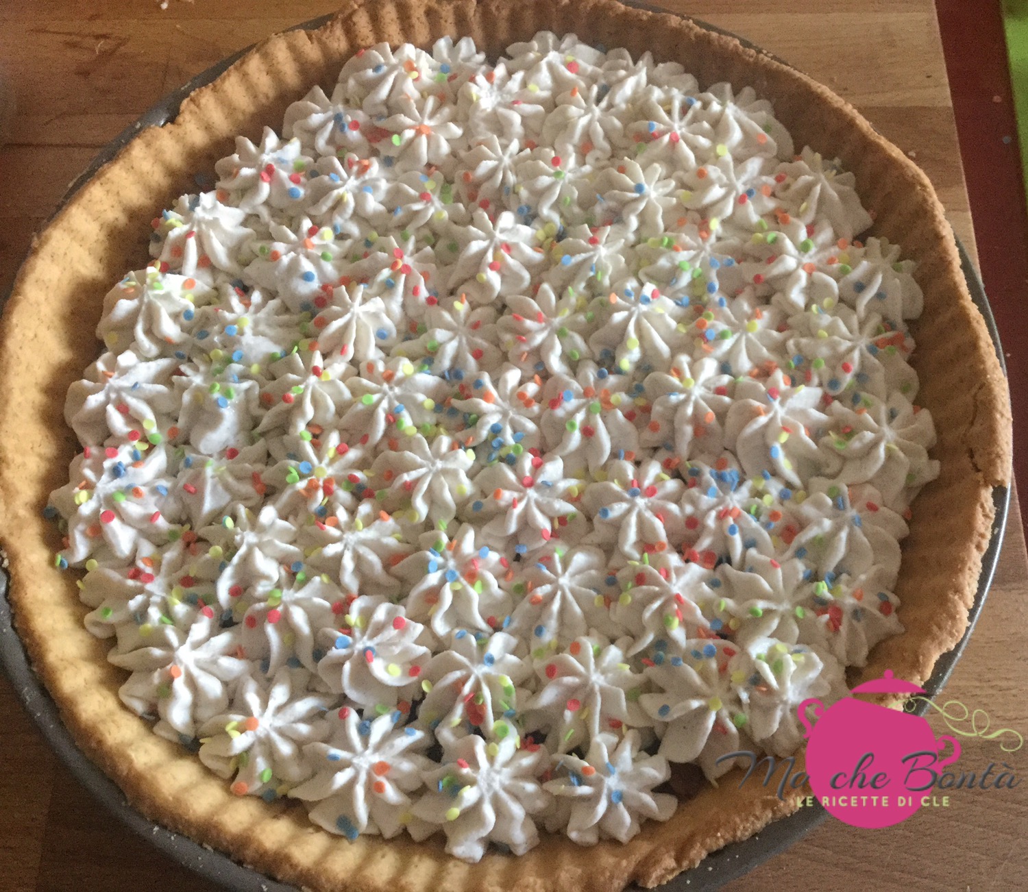 Si tratta di una crostata cotta in bianco e farcita con un sottile strato di confettura alle pere, poi un po’ di nutella, e sormontata da una spuma di ricotta profumata alla cannella. L’equilibrio di sapori è magico, io l’ho adorata e come me anche gli invitati che ne hanno apprezzato l’originalità e la bontà. Non siete sicuri possa piacervi? Fate un test come ho fatto io: comprate gli ingredienti e provate la combinazione su una fetta di pane! Vi metterete immediatamente all’opera per preparare la crostata!