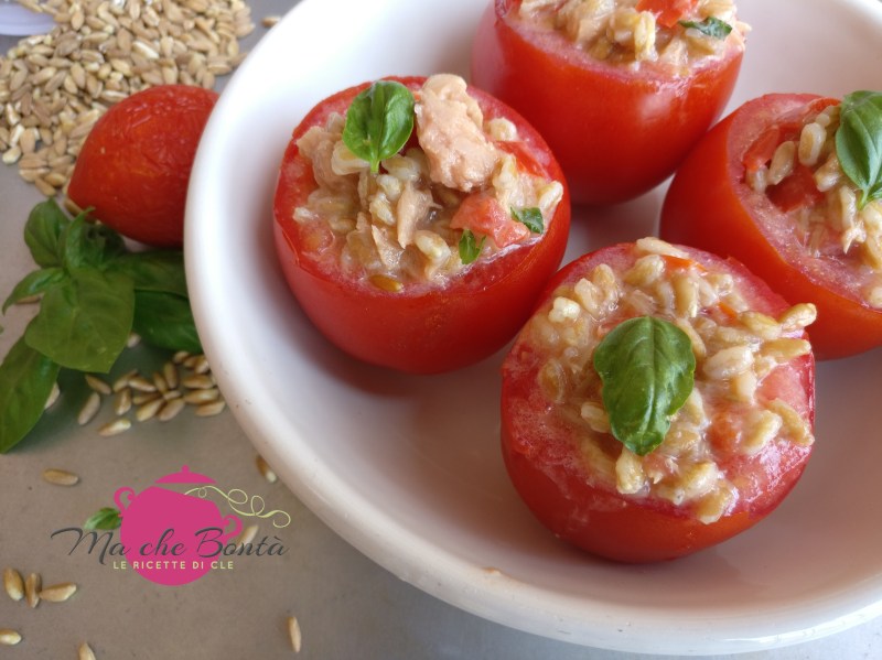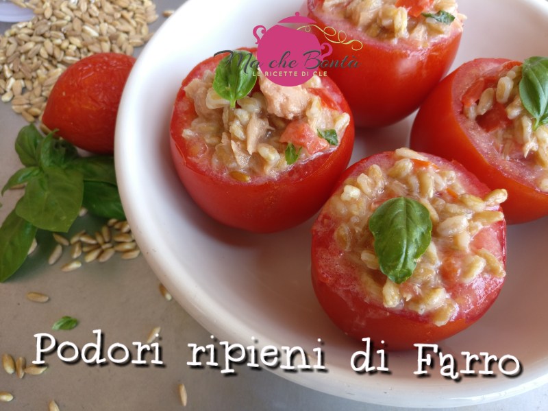Una delle delizie preparate in questi giorni è stata questa insalata di farro (ormai onnipresente nei miei menù settimanali) ai peperoni e servita nei pomodori. A piacere i pomodori così ripieni possono essere ripassati in forno oppure mangiati tal quali ( o ancora, i pomodori potete semplicemente tagliarli ed aggiungerli all’insalata se non volete usarli come contenitore!)