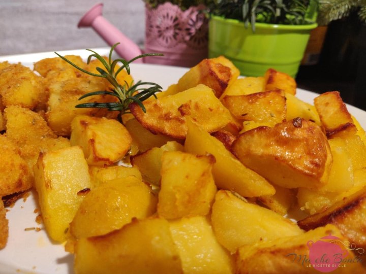 La preparazione è semplicissima: bollite le patate (oppure cuocetele al vapore come ho fatto io, per averle meno pregne di acqua) le condite con olio, sale e aromi che preferite. Per la versione alle briciole le spolverate anche con pangrattato. Poi in forno o sotto il grill a rosolare. Io ho usato questa volta la friggitrice ad aria.