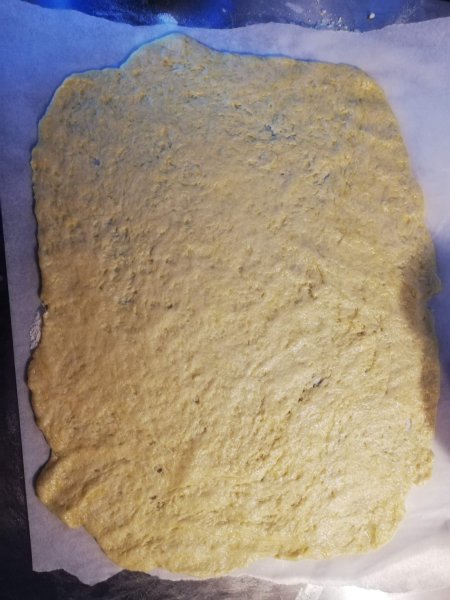 - Stendere la pasta matta su carta da forno o pellicola (oppure srotolare la sfoglia!) cospargere il fondo con un po’ di pangrattato e/o pecorino grattugiato. Spalmare il ripieno su tutta la sfoglia lasciando un centimetro dal bordo per poter sigillare. Pissicate bene i bordi della pasta per evitare che il formaggio in cottura fuoriesca.