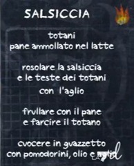 Un modo diverso di utilizzare la salsiccia è utilizzarla nel ripieno ad esempio dei molluschi. Occorrono: 4 totani, 4 fette di pane raffermo ammollato nel latte, salsiccia, aglio, olio, pomodori, prezzemolo.