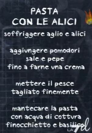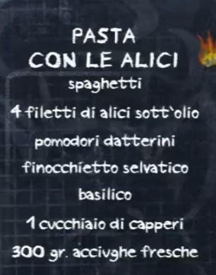 Alici, pistacchi, pecorino, Pomodoro San Marzano, Olio evo, sale.