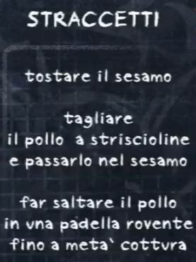 • Ottimo lavoro “Cle”! Che fatica! Brava, bravissima. Però stai più attenta all’ortografia di alcuni termini tecnici. Ad es. “bisk” (il fumetto fatto con i carapaci e le squame chitinose dei gamberi o degli scampi) si scrive “bisque”. Ma sono piccolezze. Brava! È grazie.